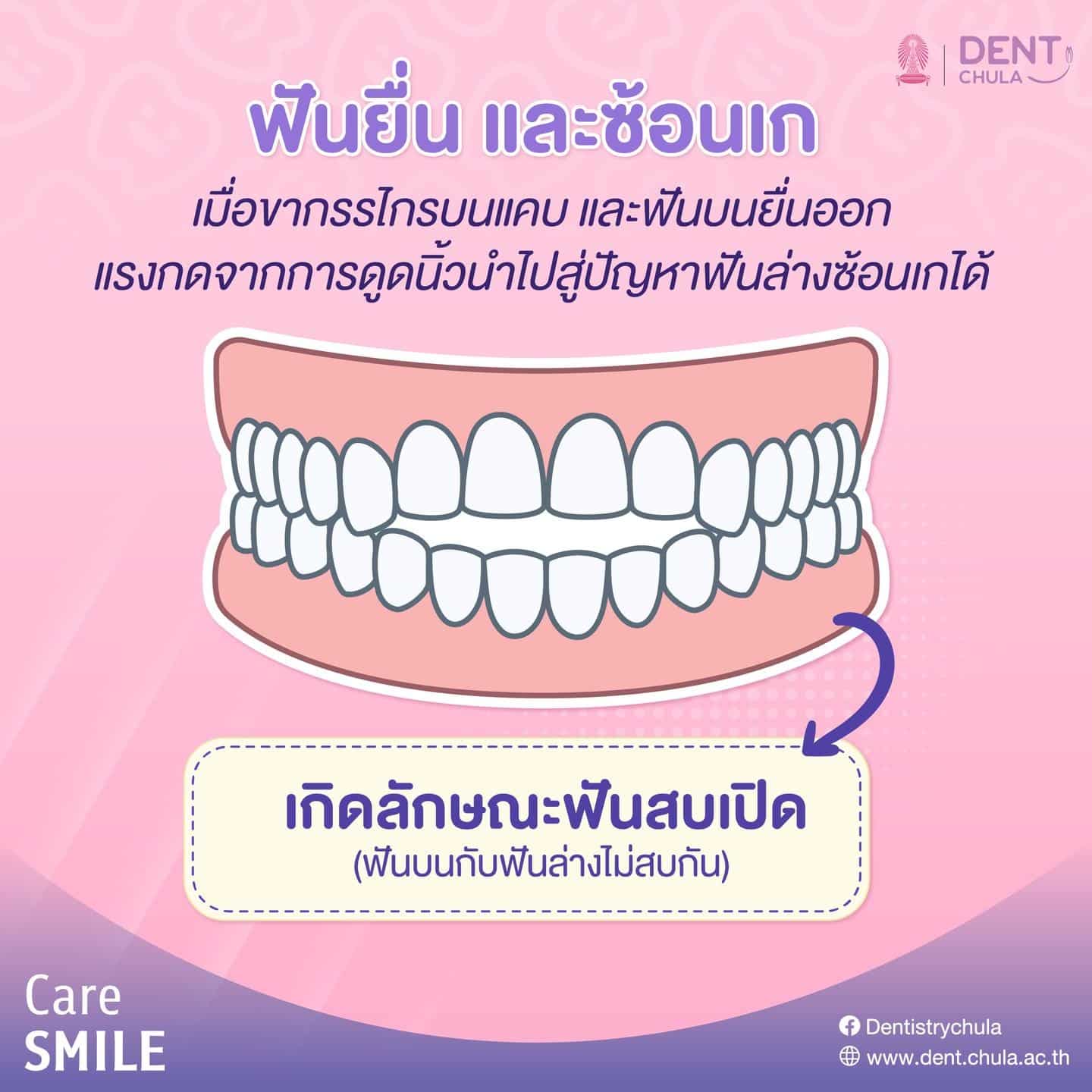 - เกิดลักษณะฟันสบเปิด (ฟันบนกับฟันล่างไม่สบกัน)