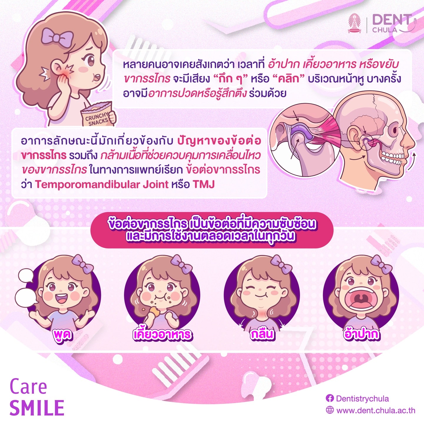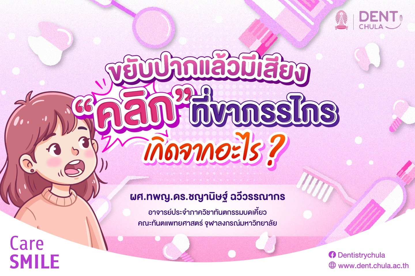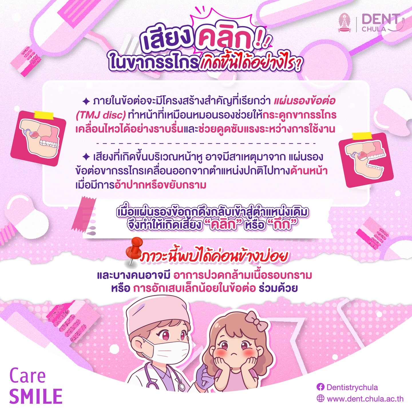 เวลาขยับปาก หรือขากรรไกร ได้ยินเสียง “คลิก” หรือเหมือนได้ยินเสียง “กึก” ที่ขากรรไกร มันคืออะไร ถือว่าเป็นสัญญาณของการเกิดโรคอะไรได้บ้าง และจะมีวิธีการรักษาหรือป้องกันได้อย่างไรบ้าง