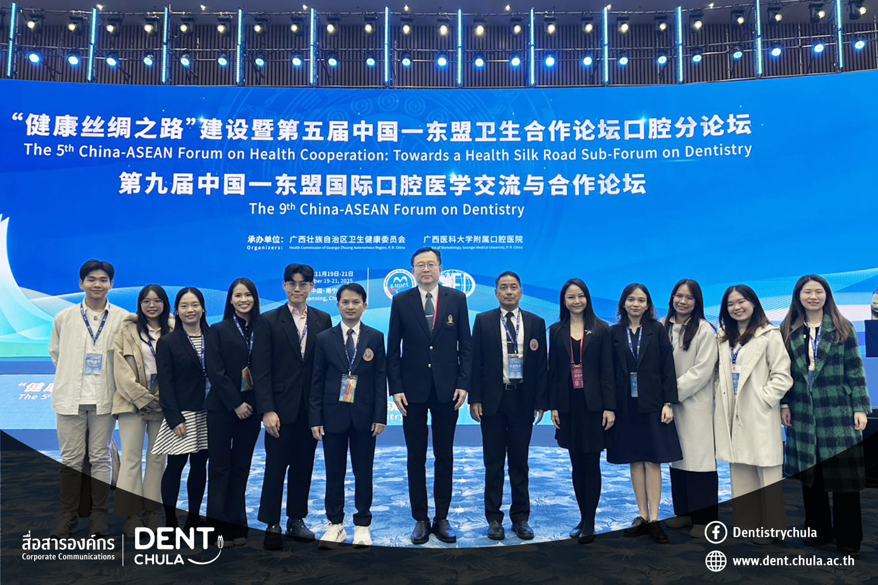 คณะผู้บริหาร คณาจารย์ และนิสิต คณะทันตแพทยศาสตร์ จุฬาลงกรณ์มหาวิทยาลัย เข้าร่วมประชุมและนำเสนอผลงานวิจัยในการประชุมวิชาการ The 5th China-ASEAN Forum on Health Cooperation: Towards a Health Silk Road – Sub-Forum on Dentistry และ The 9th China-ASEAN Forum on Dentistry จัดขึ้นระหว่างวันที่ 19-21 พฤศจิกายน 2568 ณ เมือง หนานหนิง ประเทศจีน เพื่อร่วมแลกเปลี่ยนองค์ความรู้ด้านการศึกษาทางทันตแพทยศาสตร์ การวิจัย และการพัฒนาสุขภาพช่องปาก กับผู้แทนจากประเทศต่างๆ ในภูมิภาคอาเซียนและจีน