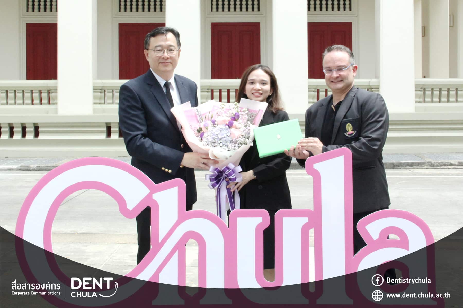 นางสาวเชา แลม บู (Miss Chau Lam Buu) คณะทันตแพทยศาสตร์ วิทยานิพนธ์เรื่อง “การประยุกต์ใช้ชิปไมโครฟลูอิดิกร่วมกับไฮโดรเจลจากแมทริกซ์ไร้เซลล์ของต่อมน้ำลายหมู” (สาขาวิทยาศาสตร์สุขภาพ) อาจารย์ที่ปรึกษาหลัก: รองศาสตราจารย์ ทพ.ดร. โจอาว นูโน เฟร์เรรา